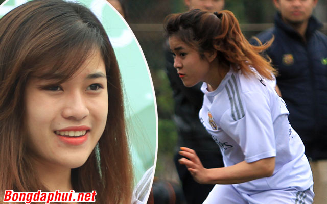 Trái với vẻ mặt cực ngầu và máu lửa trên sân bóng, cầu thủ Hồ Thị Mai Linh lại cực kỳ duyên dáng và nữ tính khi bước lên bục trao chức vô địch AJC Cup nữ cùng đội vô địch Lịch sử Đảng.